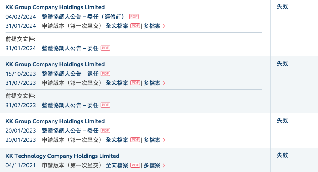 概念看似引人,但KK集团的资本之路却并不顺畅。自2021年首次向港交所递交招股书以来,KK集团已四次冲刺上市。2024 年 1 月 31 日,KK 集团第四次提交 IPO 申请,但目前其招股书已失效。