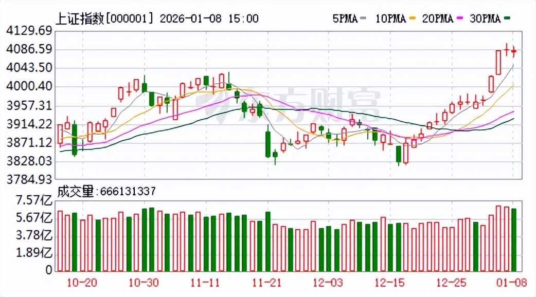 截至1月8日收盘,上证指数已连续15阳,期间累计涨幅6.76%。这种走势,即使在历史上的大牛市也罕见。