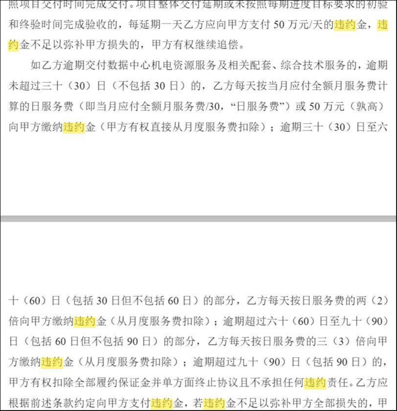 上述判断亦可从本次《建维合同》条款中得到佐证:合约明确的甲方有权提前30天终止协议且无需支付违约金的起始日期均在2032年之后。相比之下,乙方若单方面终止合作,则须提前365天通知甲方并支付违约金,且项目每延期交付一天,需向甲方支付50万元违约金。权利义务严重不对等,进一步凸显乙方风险敞口之大。