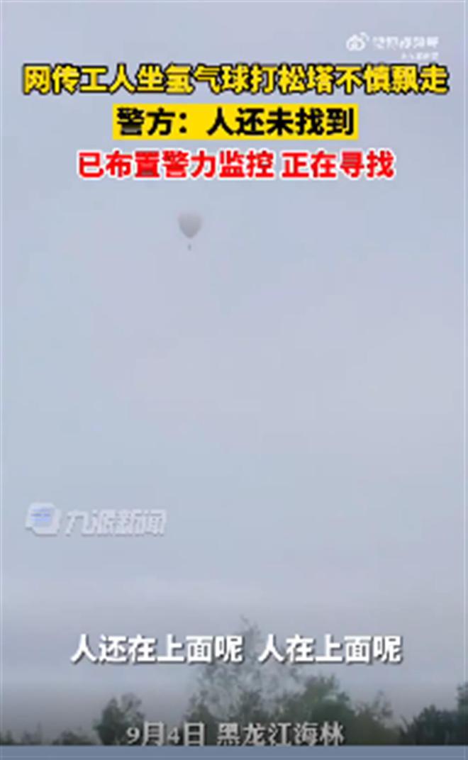 9月4日,黑龙江牡丹江海林市山市镇,工人打松塔乘坐氢气球出现事故,一人被氢气球带走飞远,一开始气球上工人用手机在空中录下视频,随后手机无法联系。对此,警方回应,人还未找到,正在寻找中。(据9月5日九派新闻)