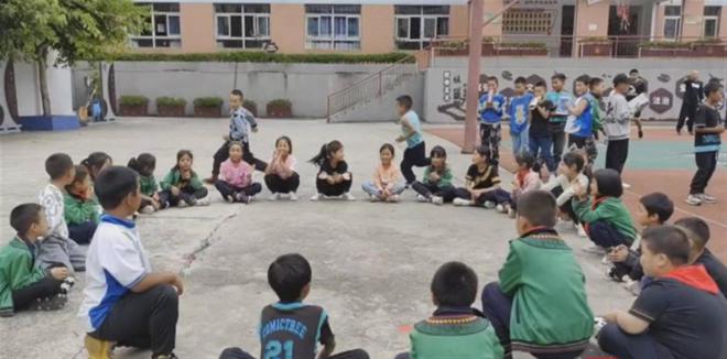 回隆镇小学学生有序疏散至操场,并在操场进行游戏