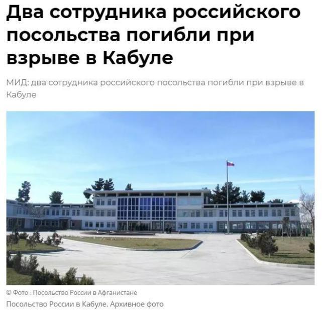 俄外交部周一发表消息称,“喀布尔时间9月5日上午10时50分,在俄罗斯驻阿富汗大使馆领事部入口附近,一名身份不明的武装分子引爆了爆炸装置。这次袭击导致外交使团两名雇员死亡,遇难者当中包括阿富汗公民。”俄外交部还表示,俄大使馆正与阿富汗安全部门保持密切联系,后者正在进行调查。