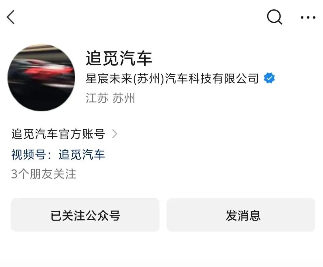 星宸未来(苏州)汽车科技为“追觅汽车”公众号运营主体,图/追觅汽车微信公众号